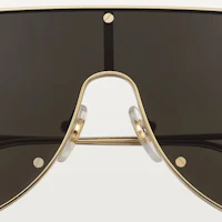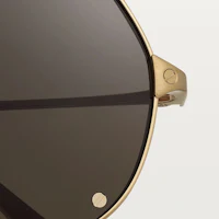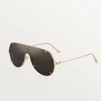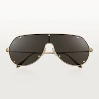 SANTOS DE CARTIER SUNGLASSES IN SMOOTH AND BRUSHED GOLDEN-FINISH METAL, MASK SHAPE AND GRAY LENSES.